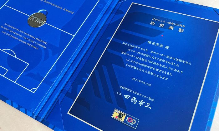 日本サッカー協会100周年「功労表彰」を受賞しました
