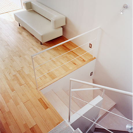 建物中心には階段があり、家族の関係をゆるりとつなぐ。