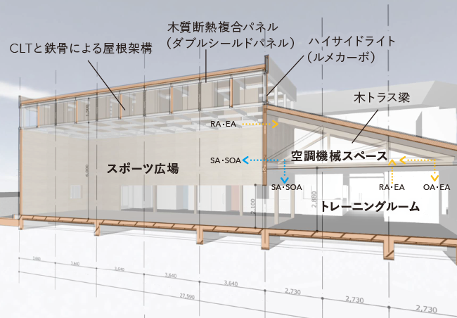 体を動かすことを楽しんでいる人々の風景が見える、開かれた体育館。
